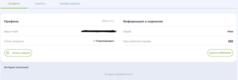 - В разделе «Профиль» вы можете установить пароль, подтвердить свой аккаунт или настроить подписку. Ниже вы можете видеть историю своих платежей в форме таблицы.